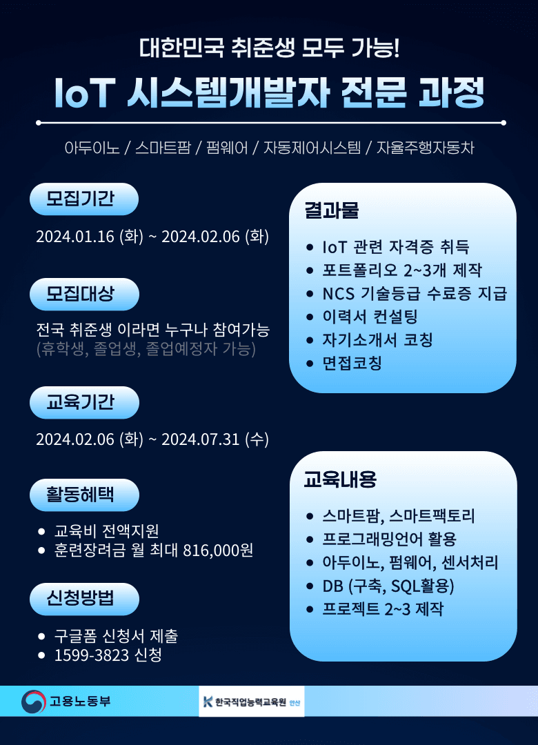 [경기도/인천/안산] 사물인터넷 IoT 개발자 전문가 국비지원 무료교육 학원