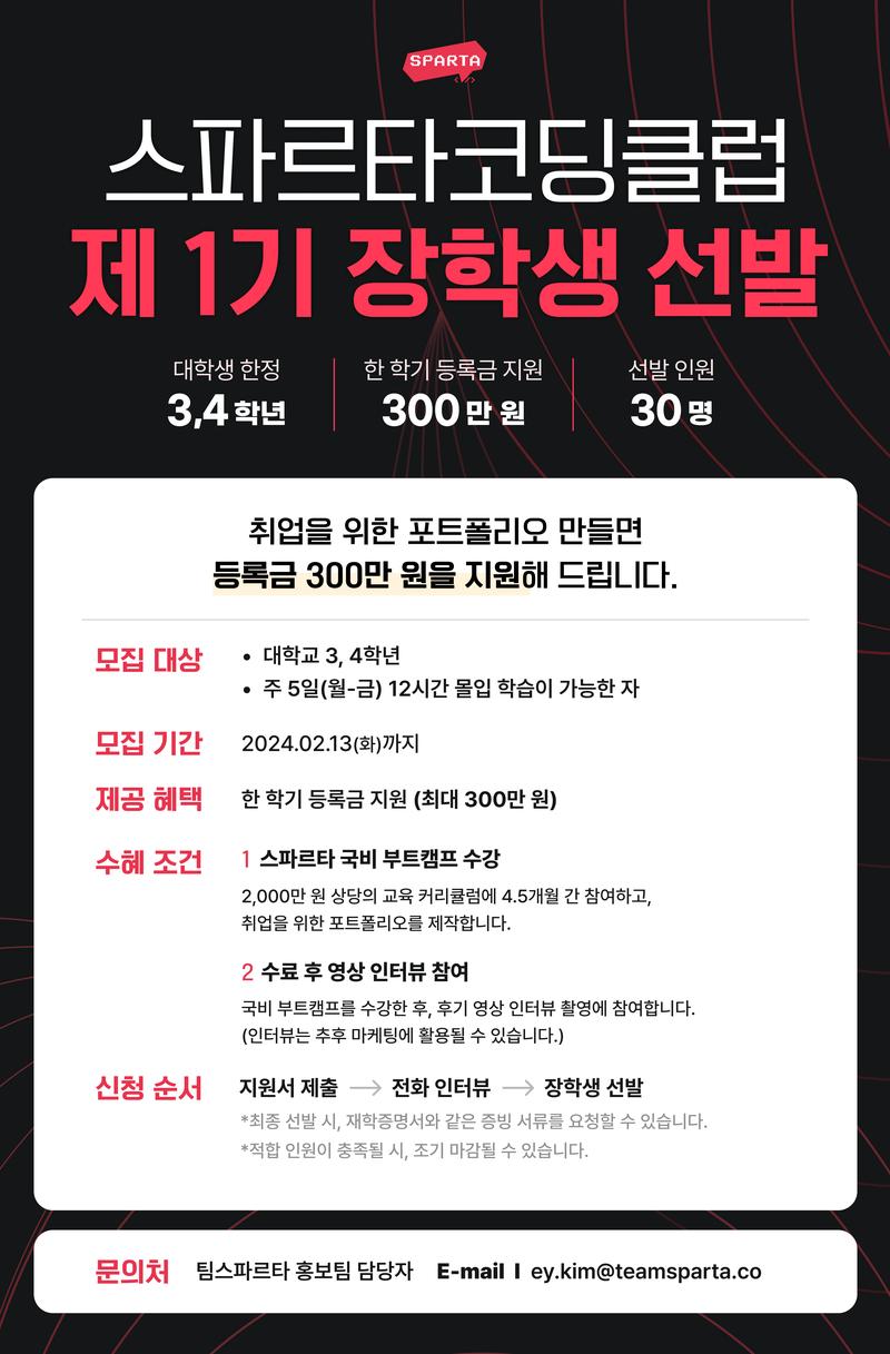 온라인 코딩 교육 서비스 '스파르타코딩클럽'에서 제 1기 장학생을 모집합니다.