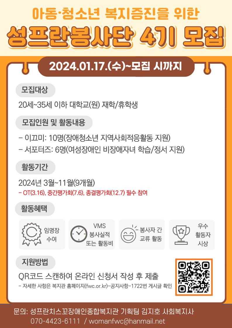 📞 봉사단 및 신청서 작성 관련: 기획팀 김지호 사회복지사(070-4423-6111)