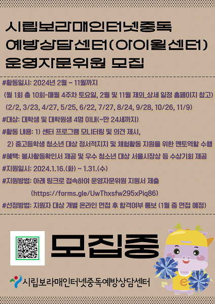 - 문의: 시립보라매인터넷중독예방상담센터 김희주 (02-836-1385~8)
