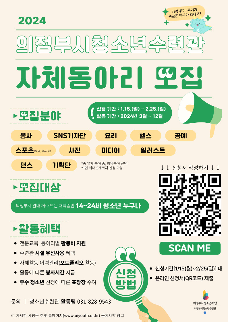 관내 공통의 관심주제를 가진 청소년들이 동아리로 구성되어 자율적·능동적 활동을 통해 개개인별 특기계발 및 인성·사회성을 키우고자 합니다.