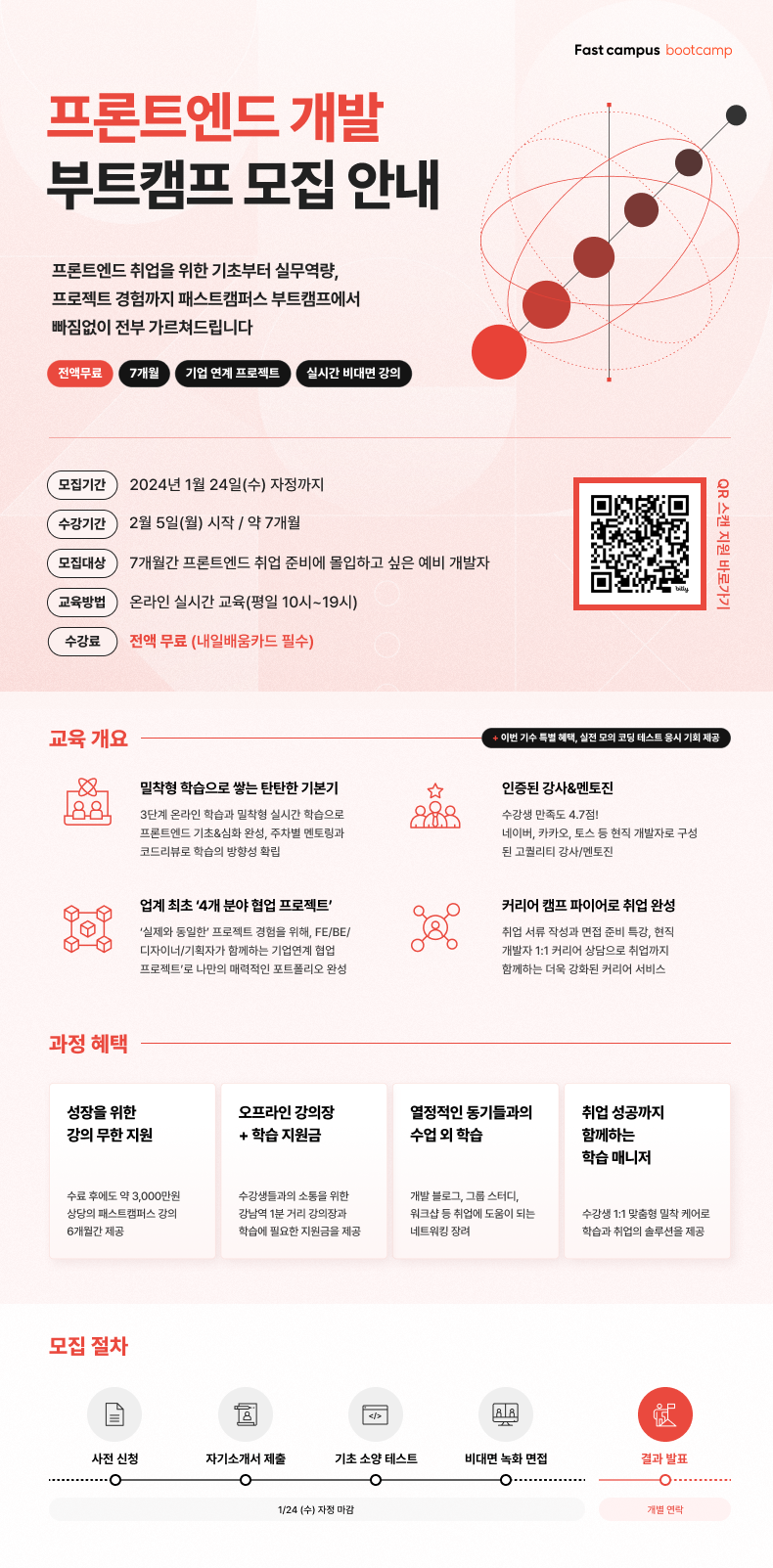 - 수료시 3천만원 상당의 온라인 강의 6개월간 무제한 수강