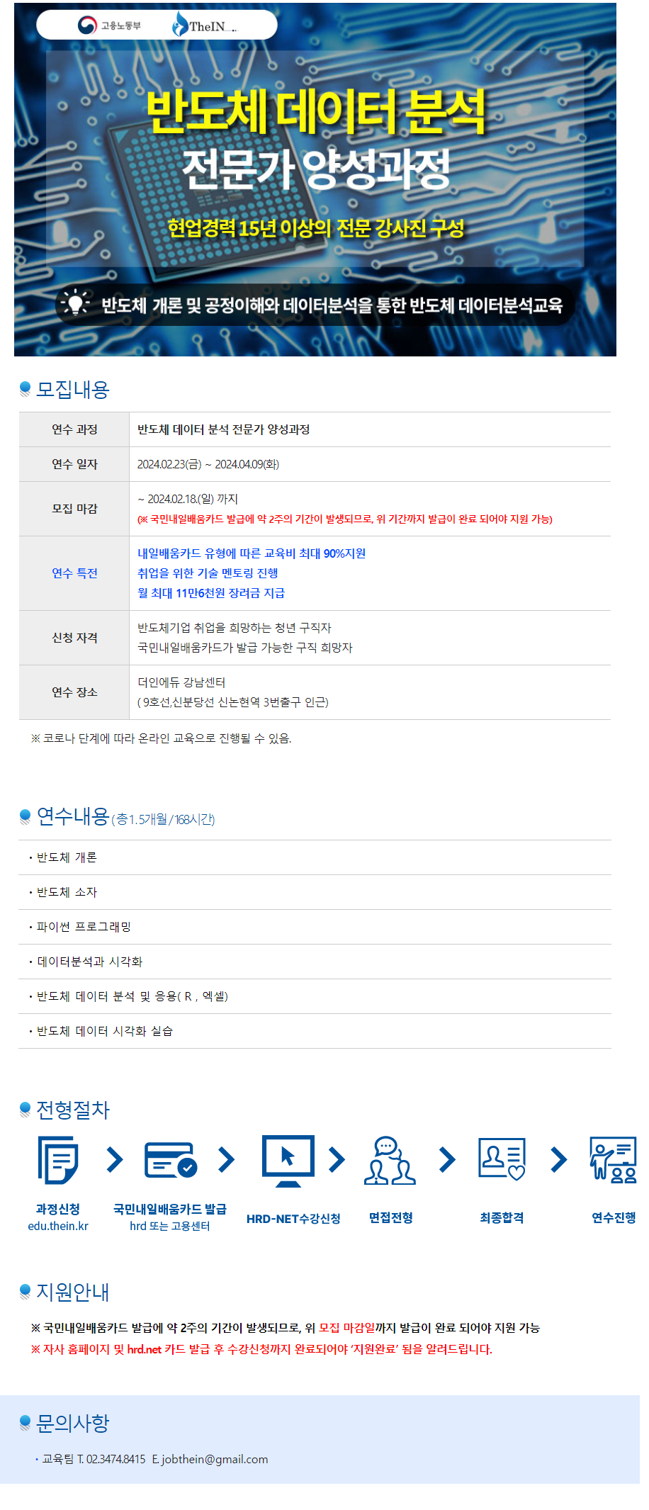 과정 신청 -> 국민내일배움카드발급 -> HRD-NET 수강신청 -> 면접전형 -> 최종합격