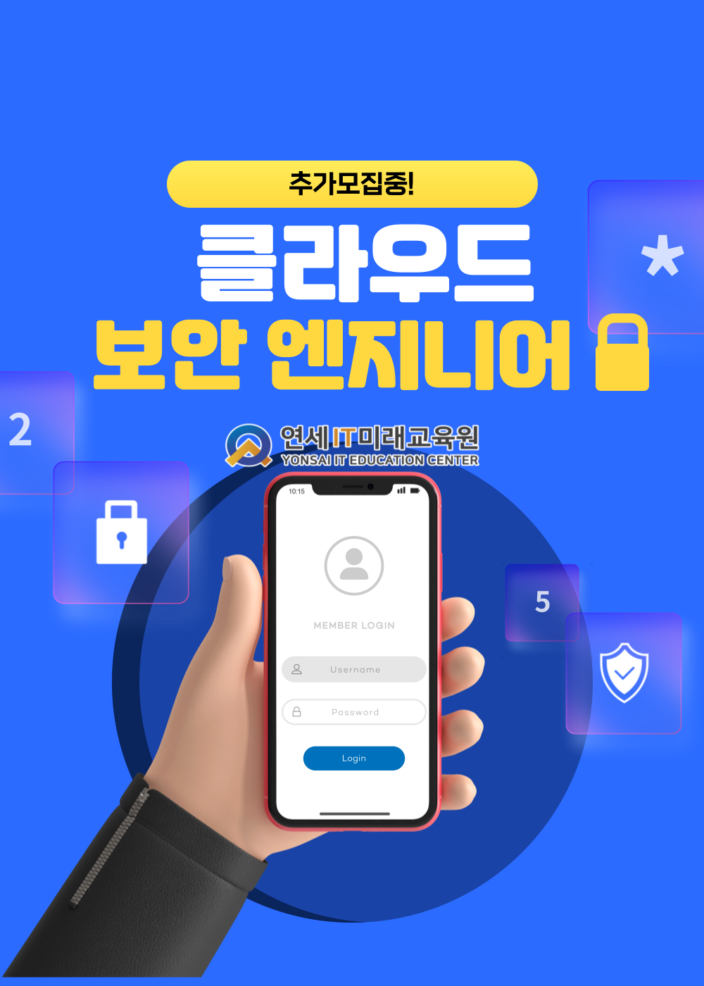 #클라우드보안 #네트워크 #화이트해커 #IT정보보안 #정보보안 #코딩 #클라우드보안국비지원 #국비지원컴퓨터학원 #수원컴퓨터학원 #IT국비지원 #모의해킹 #네트워크보호 #사이버공격 #보안교육 #코딩학원 #KDT #내일배움카드 #연세IT미래교육원 #국비교육 #취업준비 #정보처리기사 #보안 #해킹 #리눅스 #화이트해커