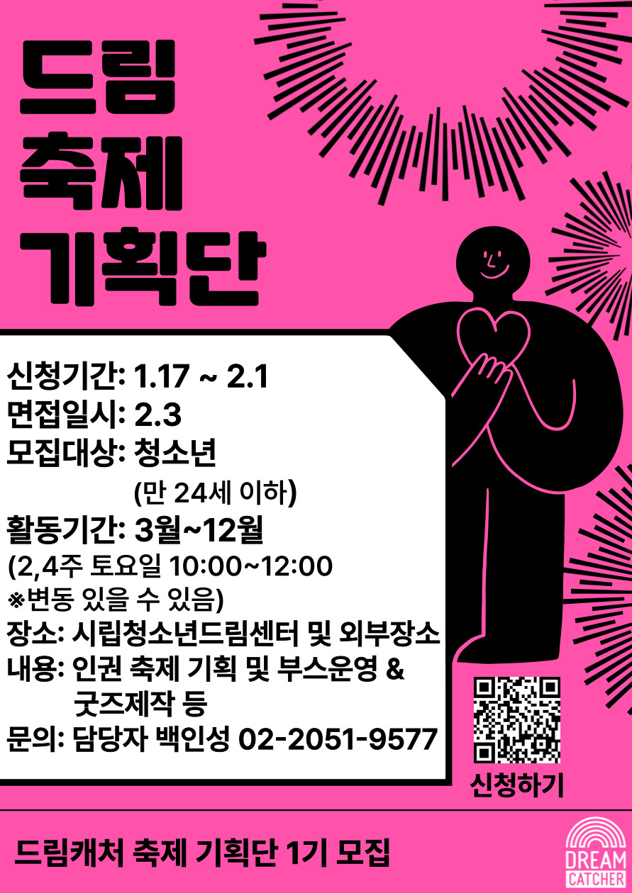 - 드림 축제기획단은 인권축제 부스 기획 및 운영,