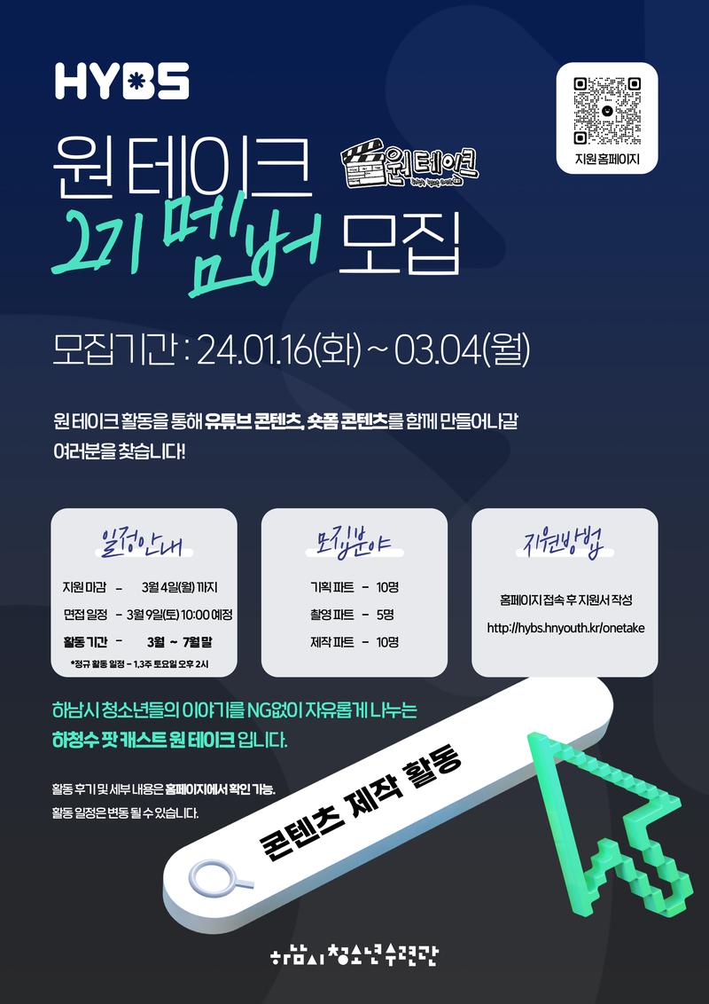 콘텐츠 제작에 관심이 있다면 HYBS 원테이크에서 함께 해요!