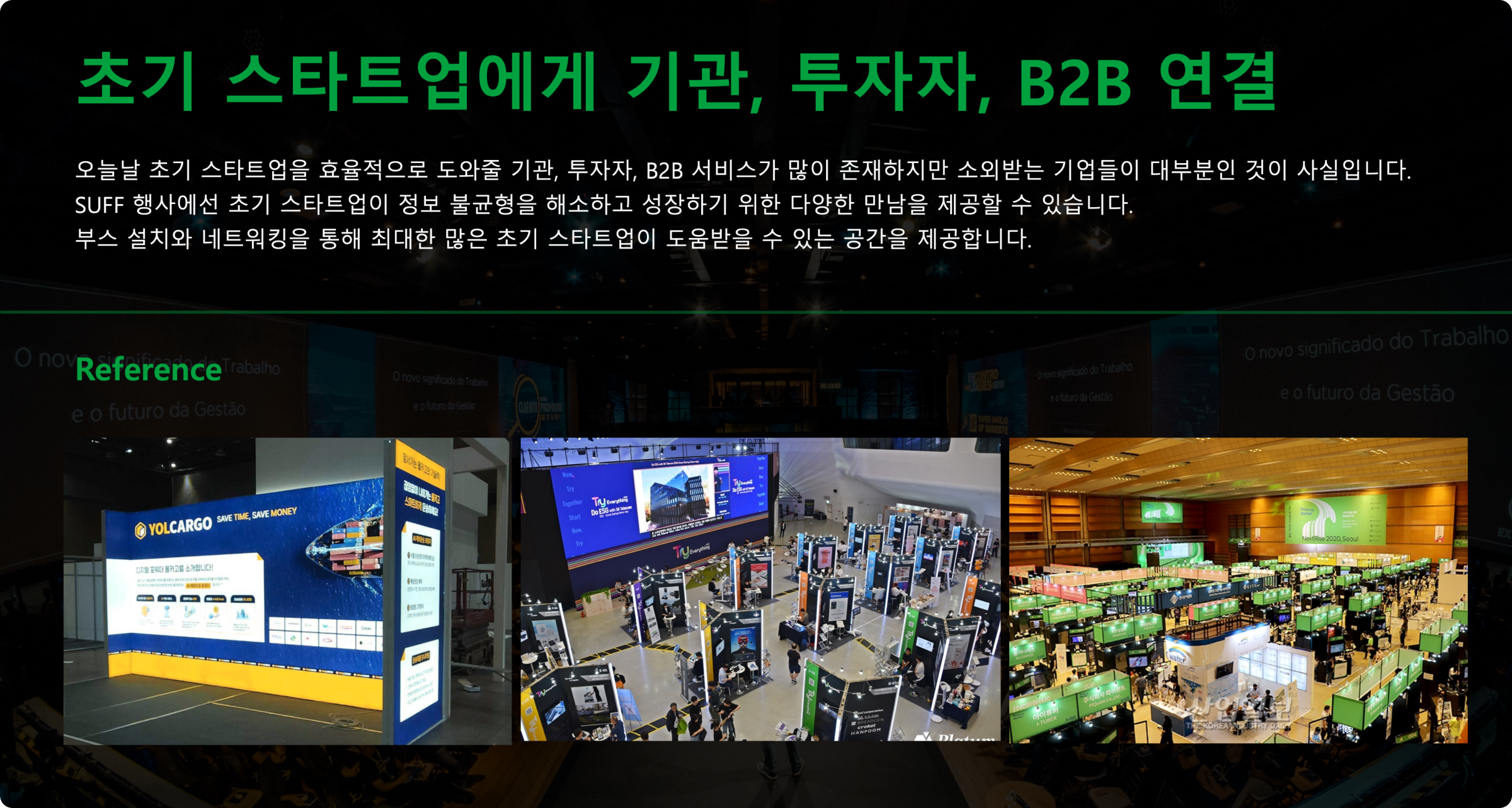 SUFF 행사는 총 3 프로그램으로 구성되어있습니다: 세미나, 부스, 네트워킹