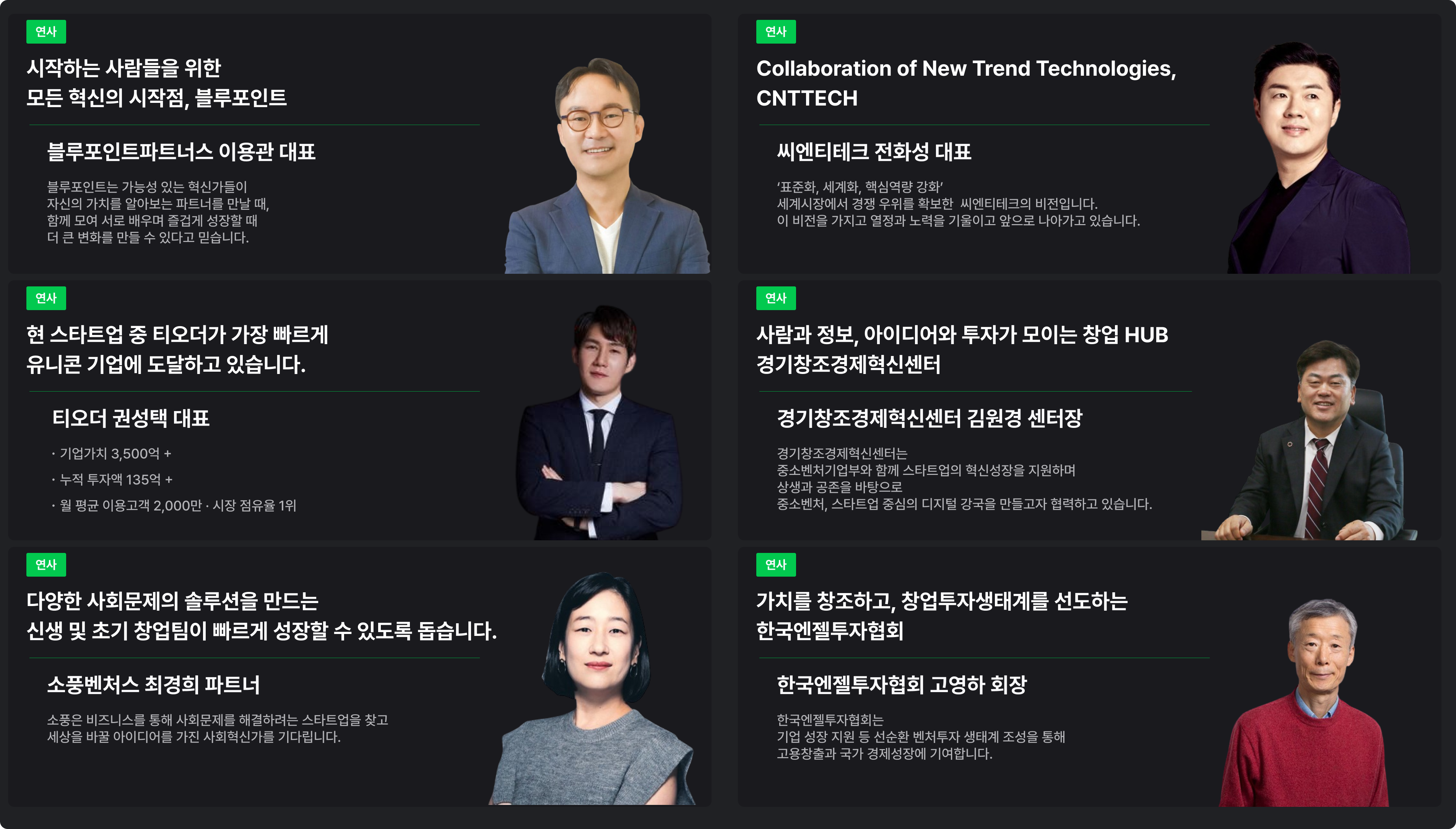 스타트업 생태계와 관련된 모든 사람을 한 자리에 모셨습니다.