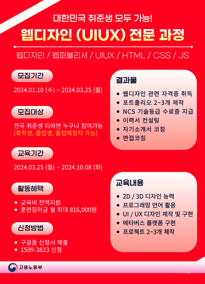 부산/경남 웹디자이너 & 웹퍼블리셔 국비지원 무료 취업 교육 (포트폴리오)