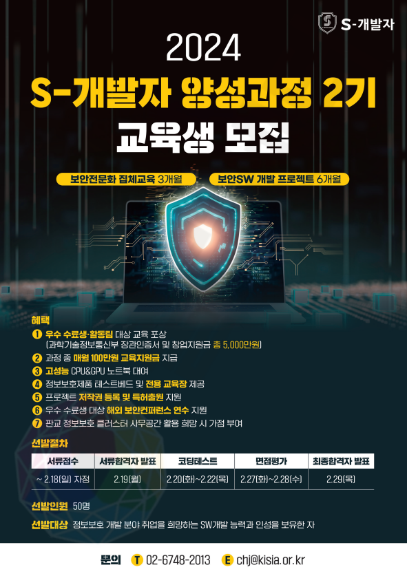 □ S-개발자(Security 개발자) 교육생 모집(~2/18)