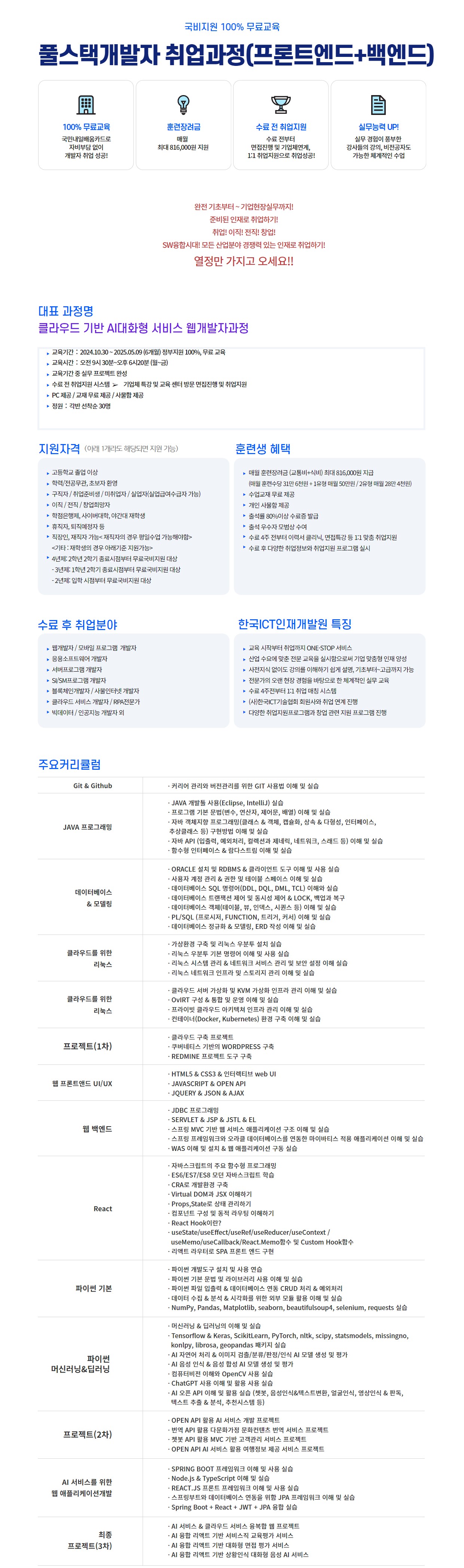 교육기간 : 2024.10.31 ~ 2025.05.12 (6.5개월)