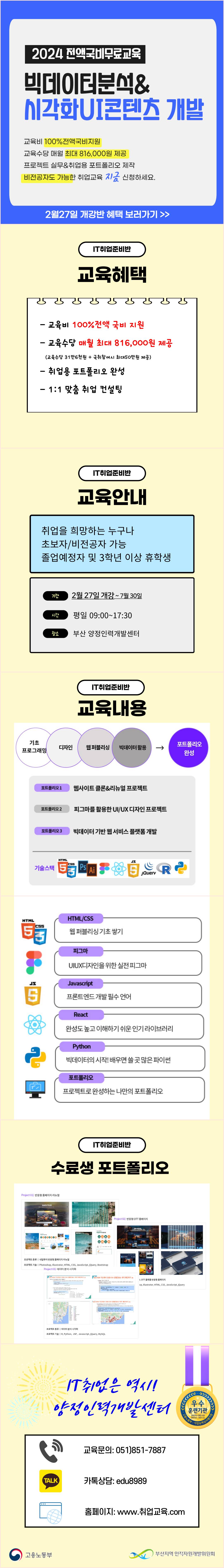 (부산/전액국비) IT취업교육생 모집(프론트엔드개발자)/매월 최대 816,000원 제공