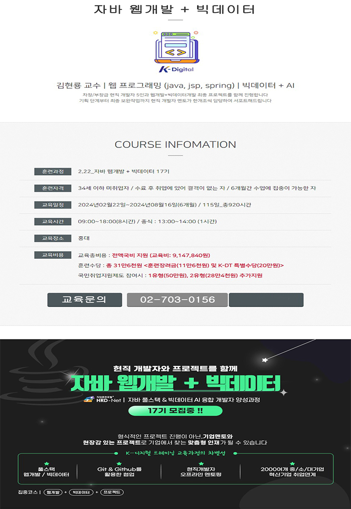 교육비용 : K-Digital 전액국비지원(국가기간.전략산업훈련 취업과정)