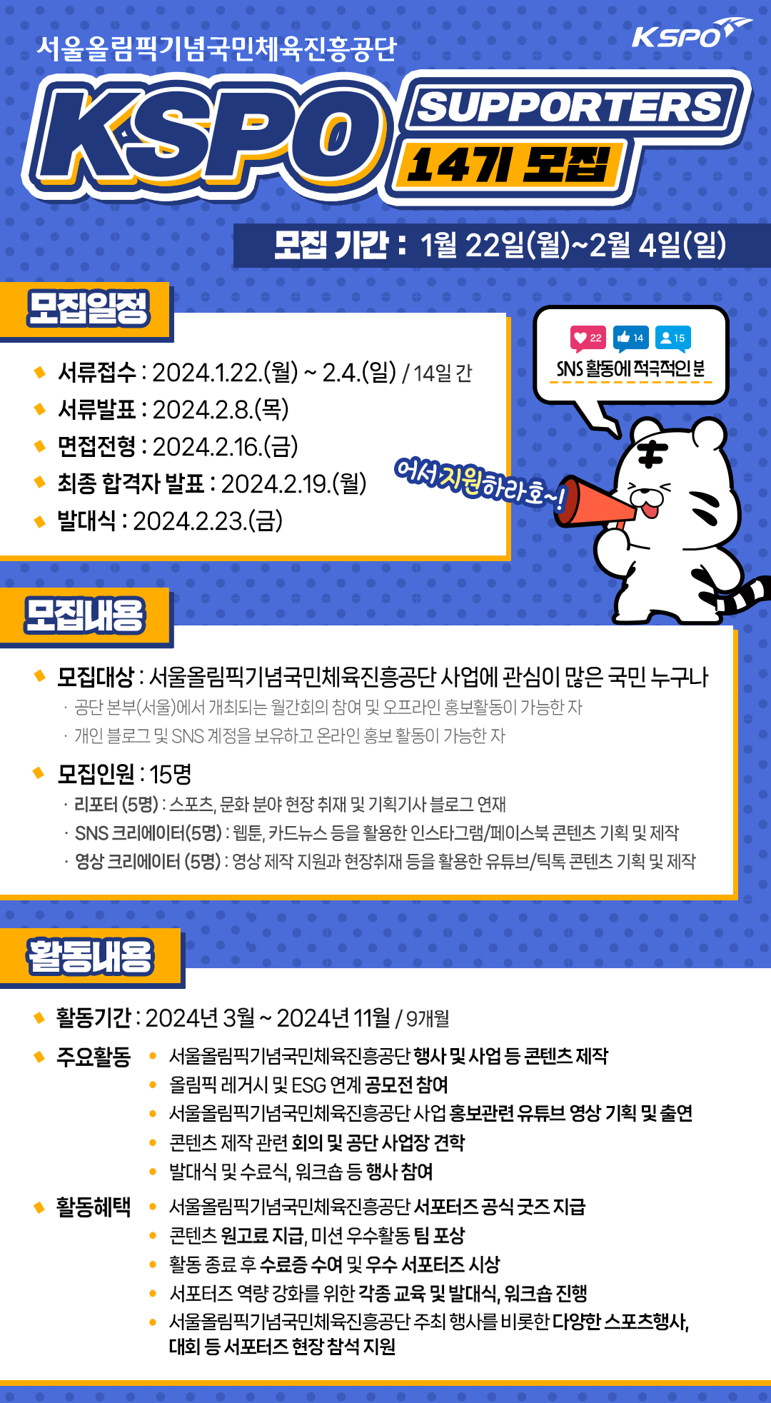 서울올림픽기념국민체육진흥공단과 함께할 KSPO 서포터즈 14기를 모집합니다!