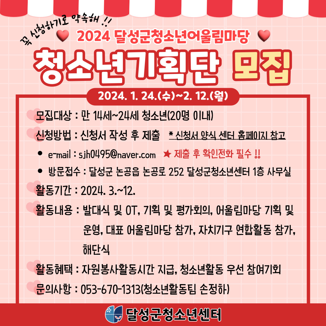 ⭐ 2024 달성군청소년어울림마당 청소년기확단 모집 ⭐