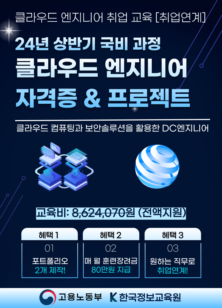 서울/경기/인천 클라우드 컴퓨팅과 보안솔루션 DC엔지니어 국비지원 취업 무료 교육