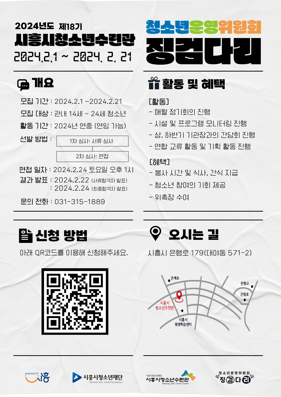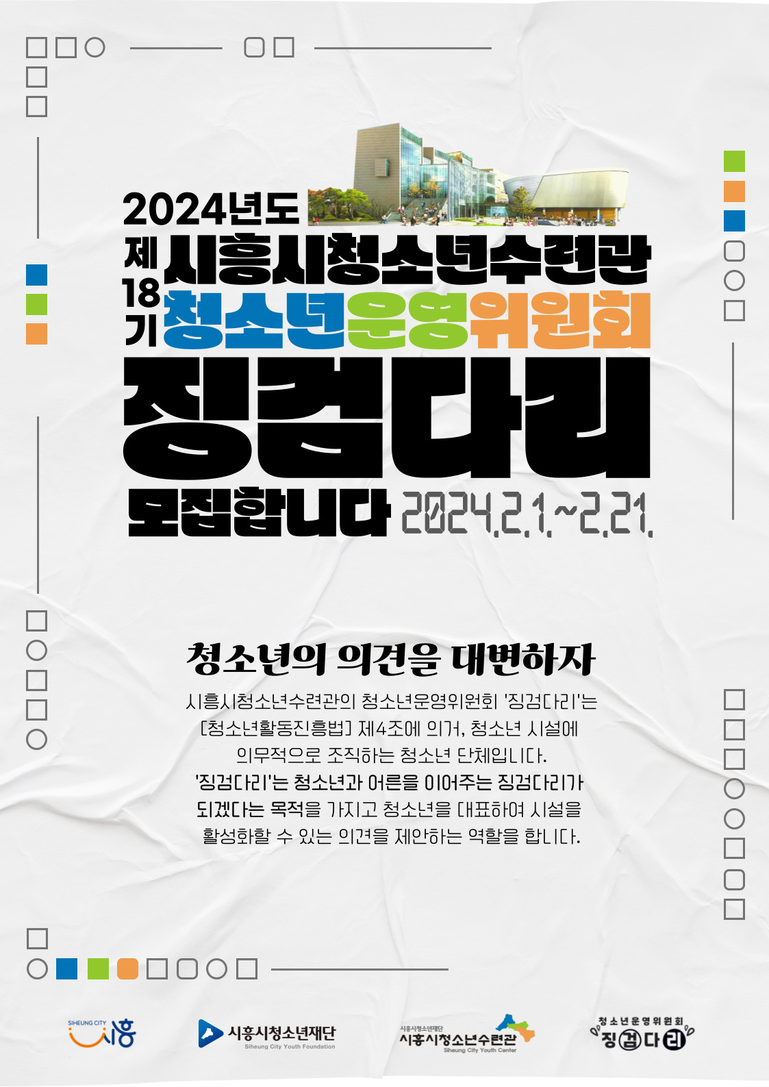 2024 시흥시청소년수련관 청소년운영위원회 징검다리 18기 모집