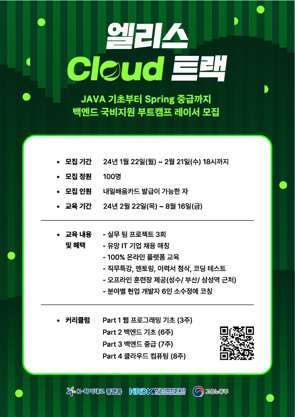 Cloud(백엔드) 트랙 | 24년 2월 22일(목) ~ 24년 8월 16일(금) (24주) |