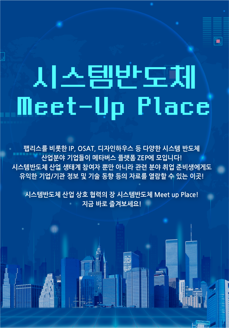 시스템반도체 업계 관계자와 취업준비생, 그리고 관련 분야에 궁금증이 있으신 모든 분들이 시스템반도체 Meet-up Place에서 다양한 정보를 습득하고 더 많은 관심을 가질 수 있는 기회가 되었으면 좋겠습니다!