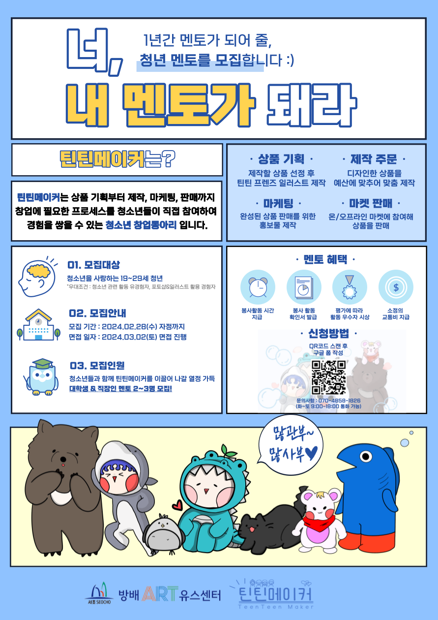 안녕하세요 방배유스센터 청소년창업동아리 틴틴메이커입니다.
