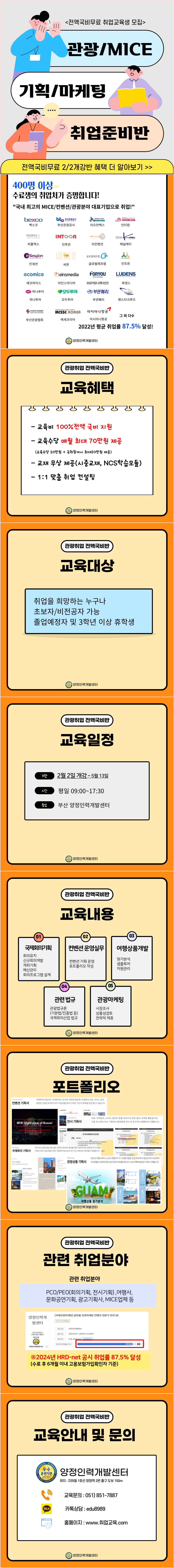 [부산/전액국비]관광MICE컨벤션 취업대비반 모집(실무스펙&포트폴리오)