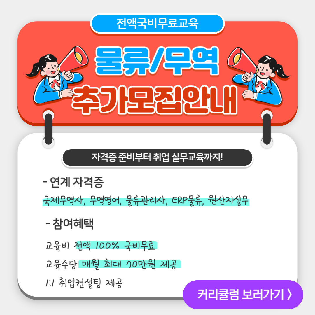 [부산/전액국비]물류&무역 자격증/취업대비반(~1/29까지 추가모집)