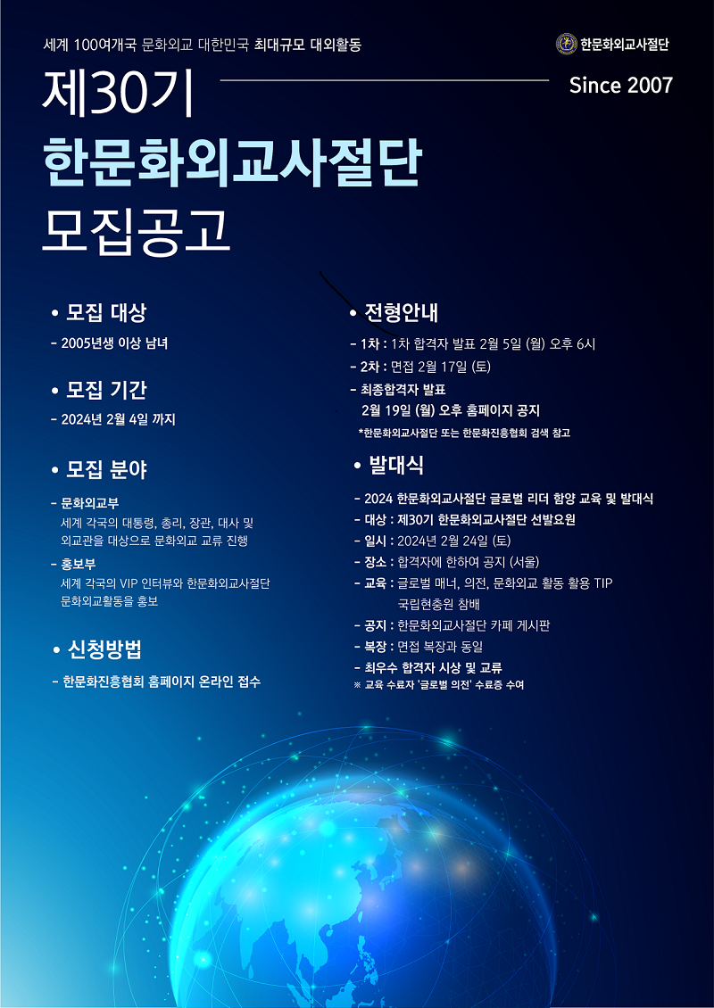 · 대상 : 제30기 한문화외교사절단 선발요원 (불참 시 합격 취소)