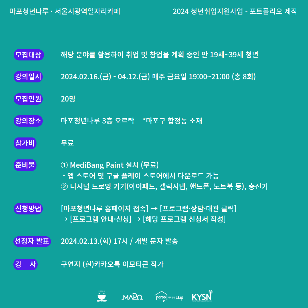 나만의 캐릭터로 이모티콘 제작하고 싶은 청년들 모여라!