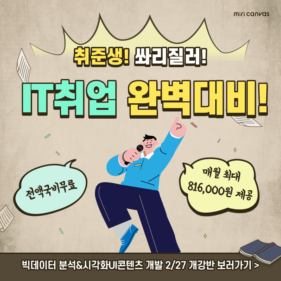 [부산/전액무료]빅데이터 분석&시각화UI콘텐츠 개발 교육생 모집(매월 최대 816,000원 제공)