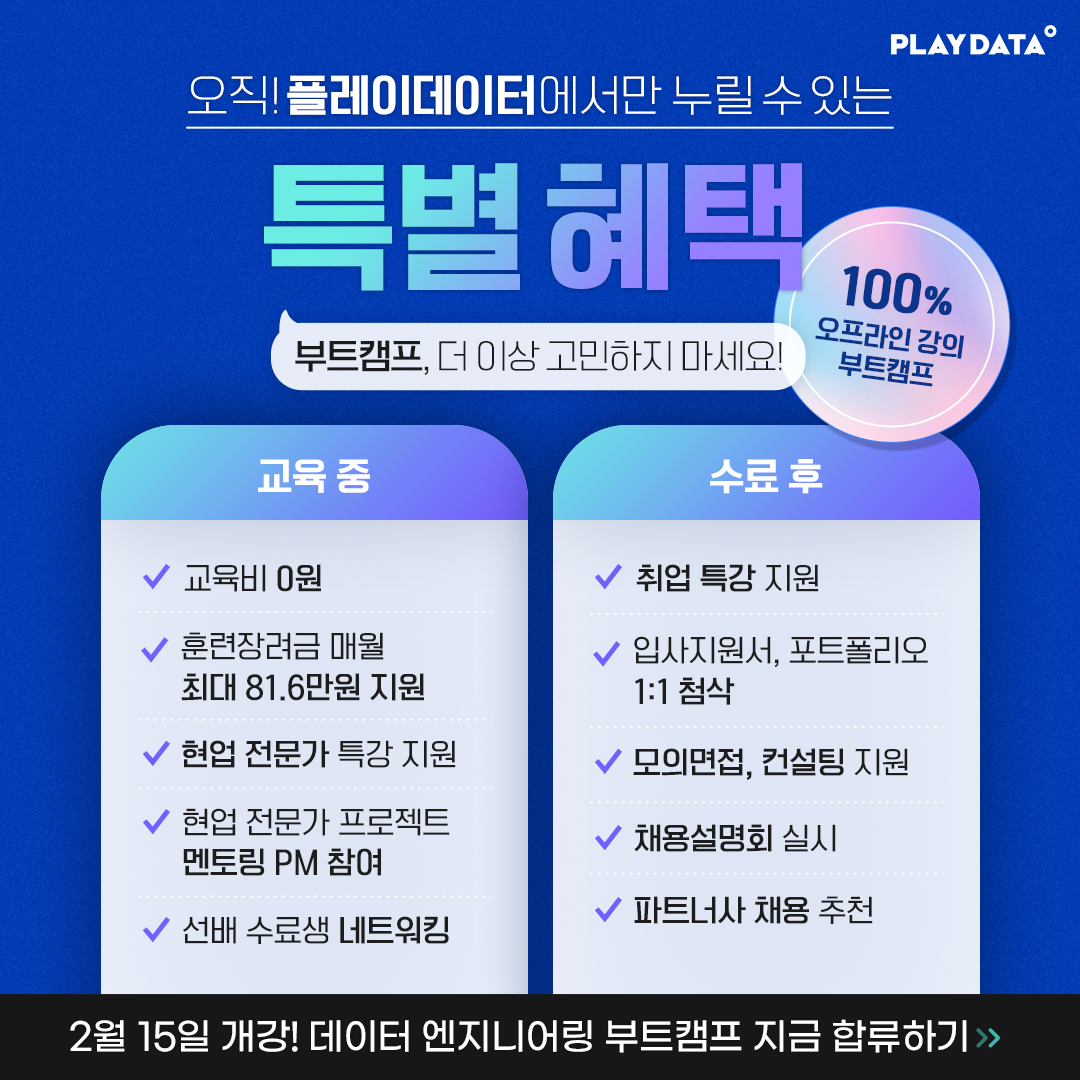 📢2월 15일 개강! 선착순 30명 모집 (플레이데이터 서초캠퍼스🏢)