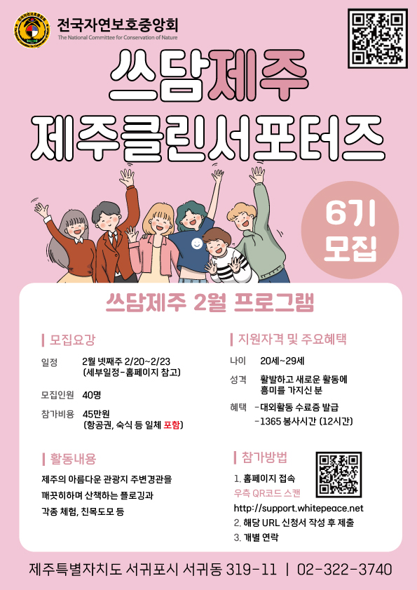 환경부소속 전국 자연보호 중앙회에서 제주도 클린업 서포터즈를 모집합니다