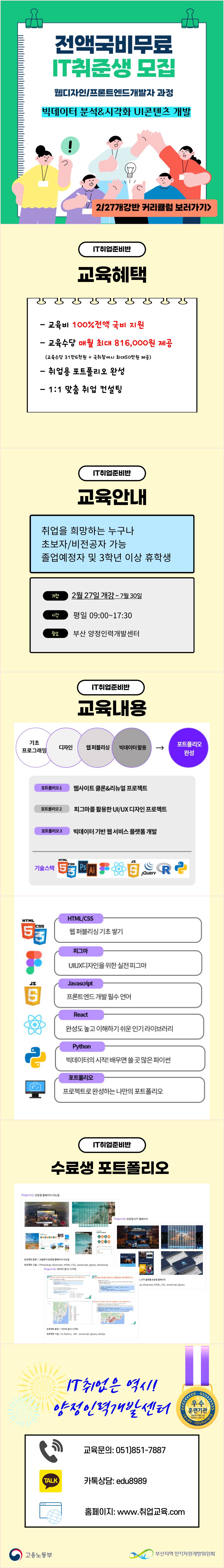 [부산]웹디자인/퍼블리셔/프론트엔드개발자 교육생 모집(전액국비무료&매월 최대 816,000원 제공)