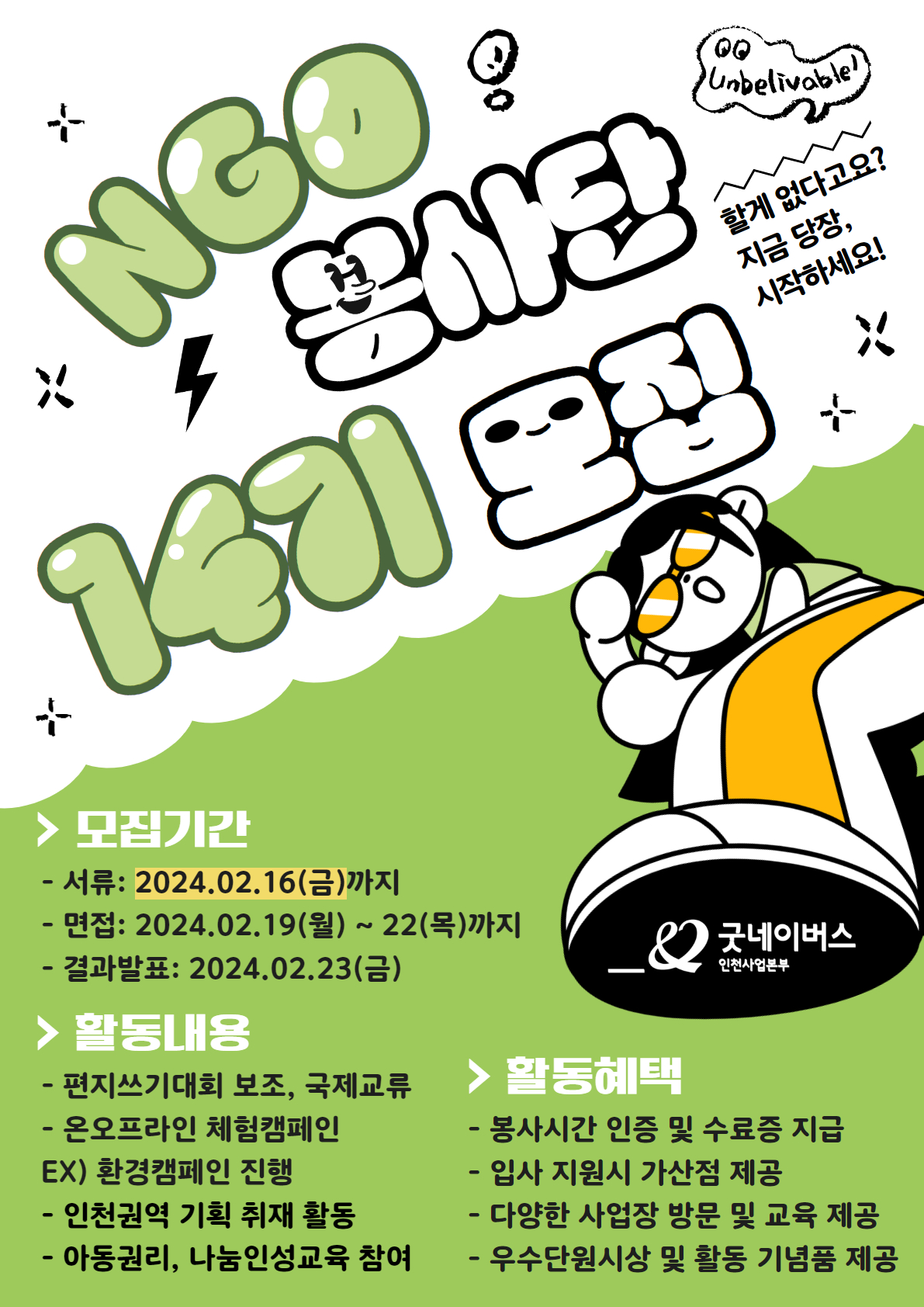 🌎굿네이버스 인천사업본부 NGO봉사단 14모집🌎 (~02.16)