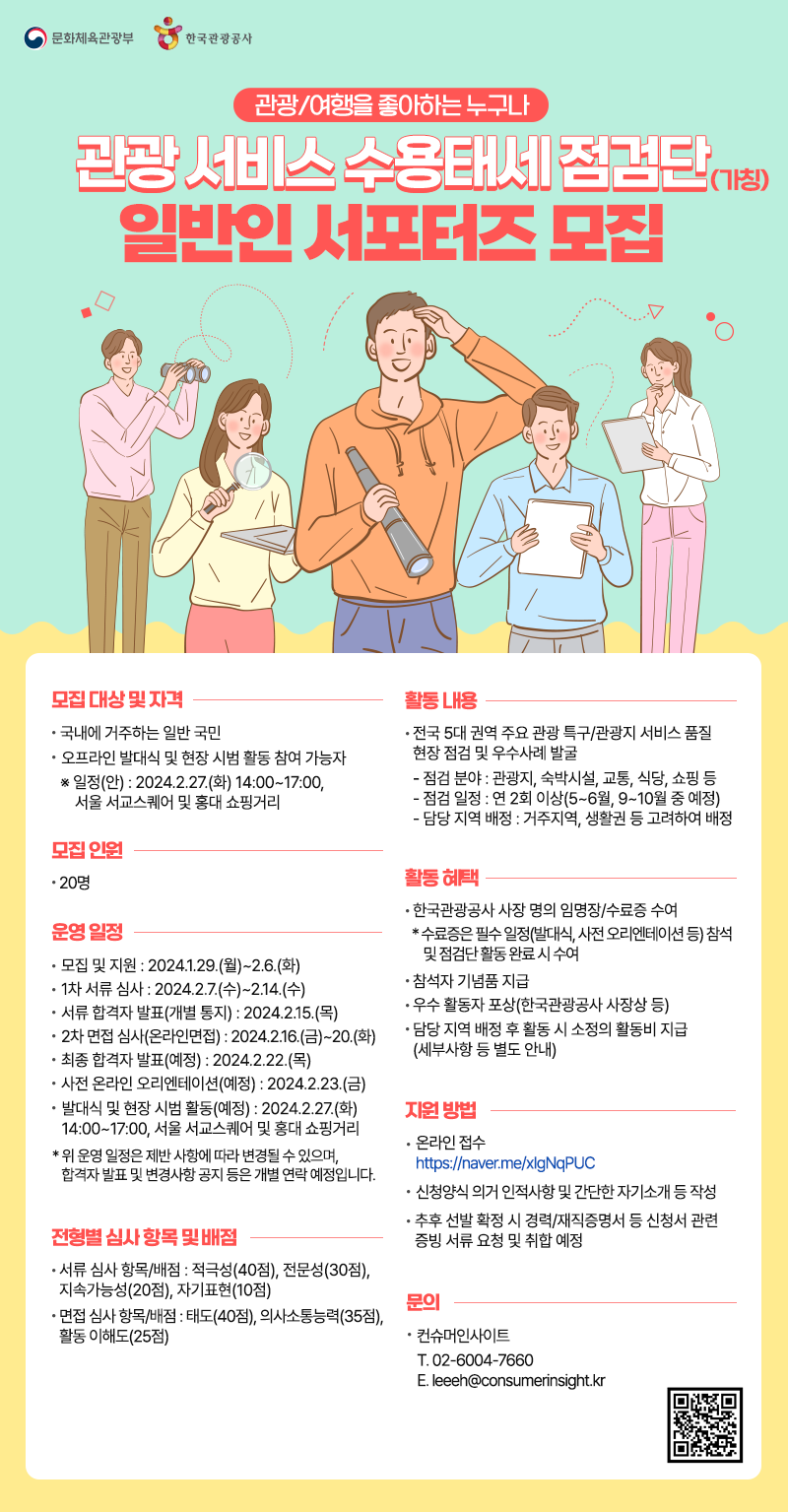 관광 서비스 수용태세 점검단 - 일반인 서포터즈 모집