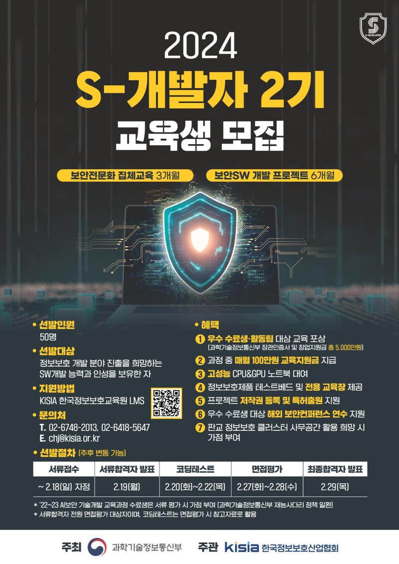 □ S-개발자(Security 개발자) 교육생 모집(~2/18)