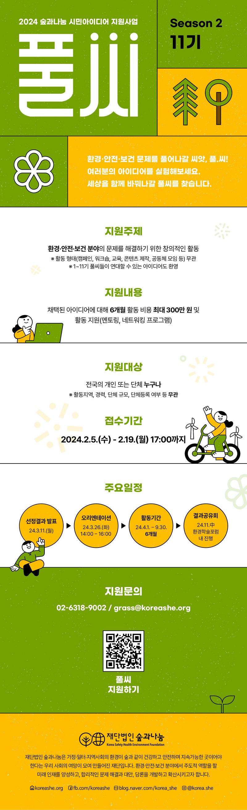 [숲과나눔] 2024 시민아이디어 지원사업 풀씨 11기 모집 (2.5~2.19)