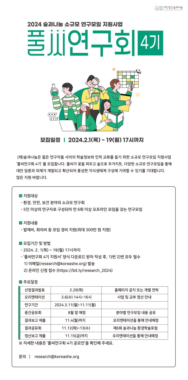 [숲과나눔] 소규모 연구모임 지원사업 풀씨연구회 4기 모집(2/1~19)