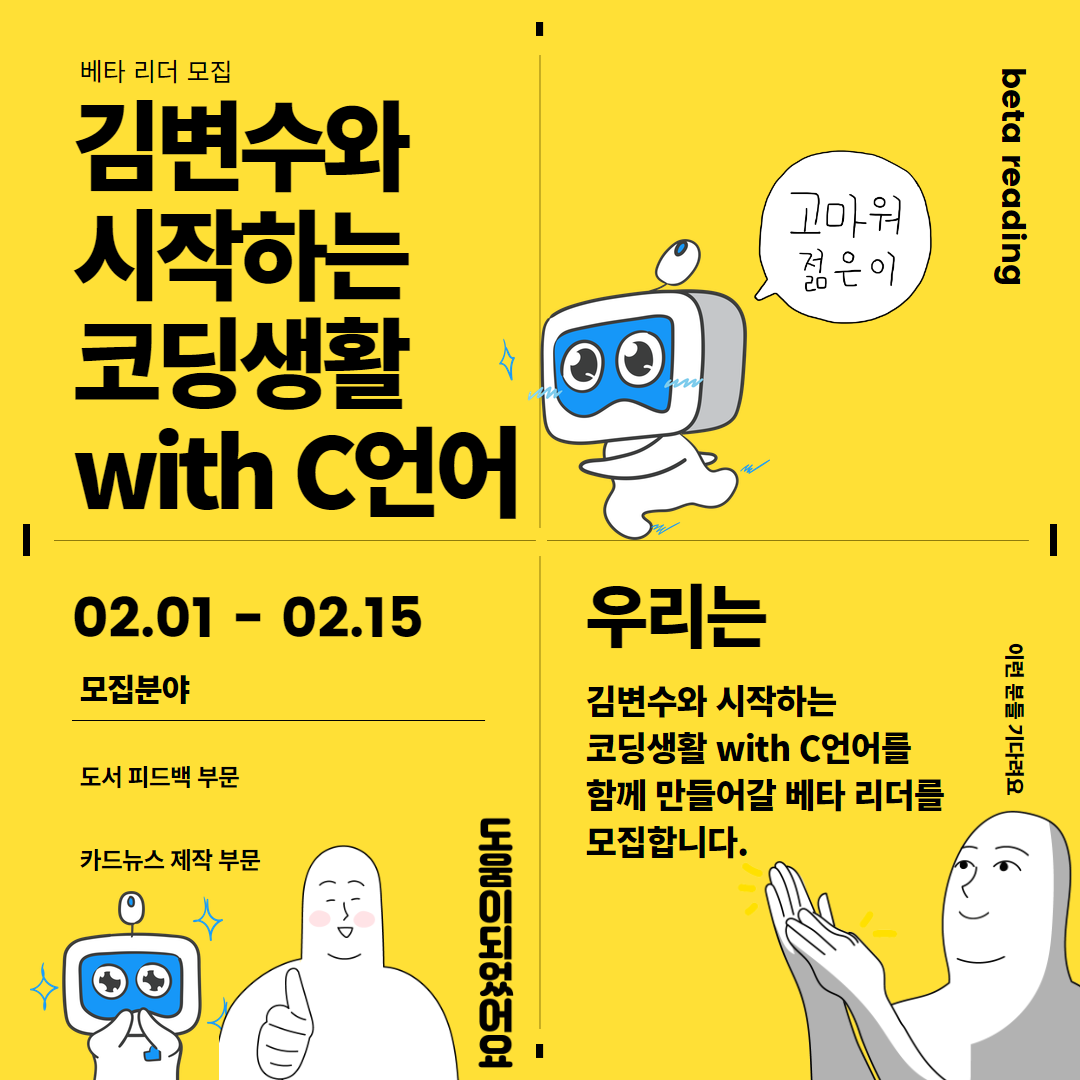 - 출간 전 도서의 원고 일부 또는 전체를 PDF로 읽고, 내용에 대한 피드백 (코드 오류, 오탈자 체크 등)을 작성해주세요!