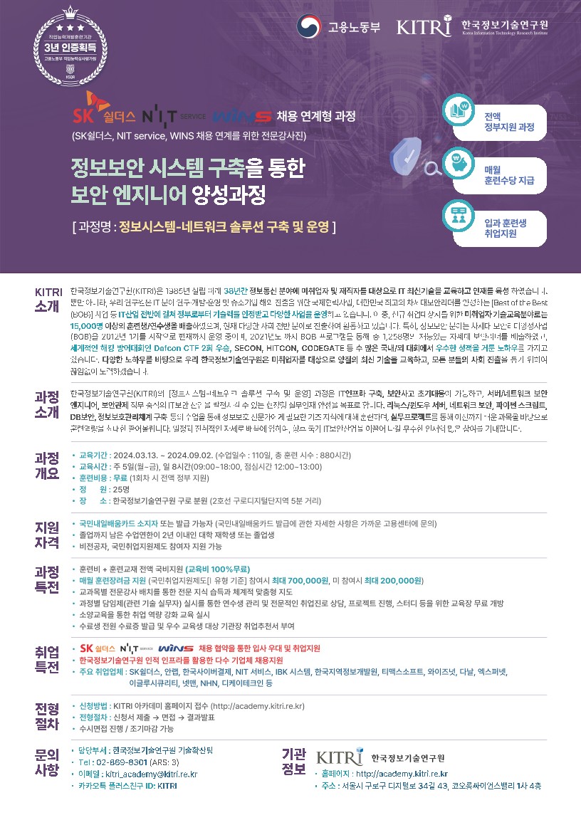 ⭐️ 2024년 03월 개강 ▶ IT 채용연계형 과정 교육생 모집!(인프라 9기) ⭐️