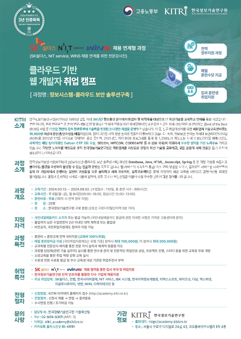 ⭐️ 2024년 03월 개강 ▶ IT 채용연계형 과정 교육생 모집!(클라우드개발 1기) ⭐️
