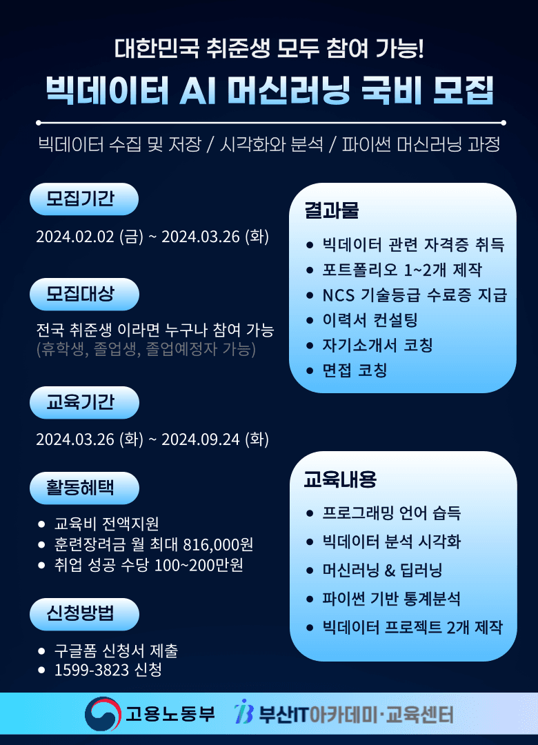 부산 코딩국비지원 빅데이터 AI머신러닝 국비지원 학원 취업 교육
