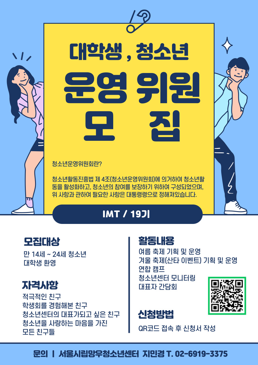 - 센터의 대표성을 가질 수 있는 대학생 위원을 모집합니다! (청소년관련학과 대학생 우대)
