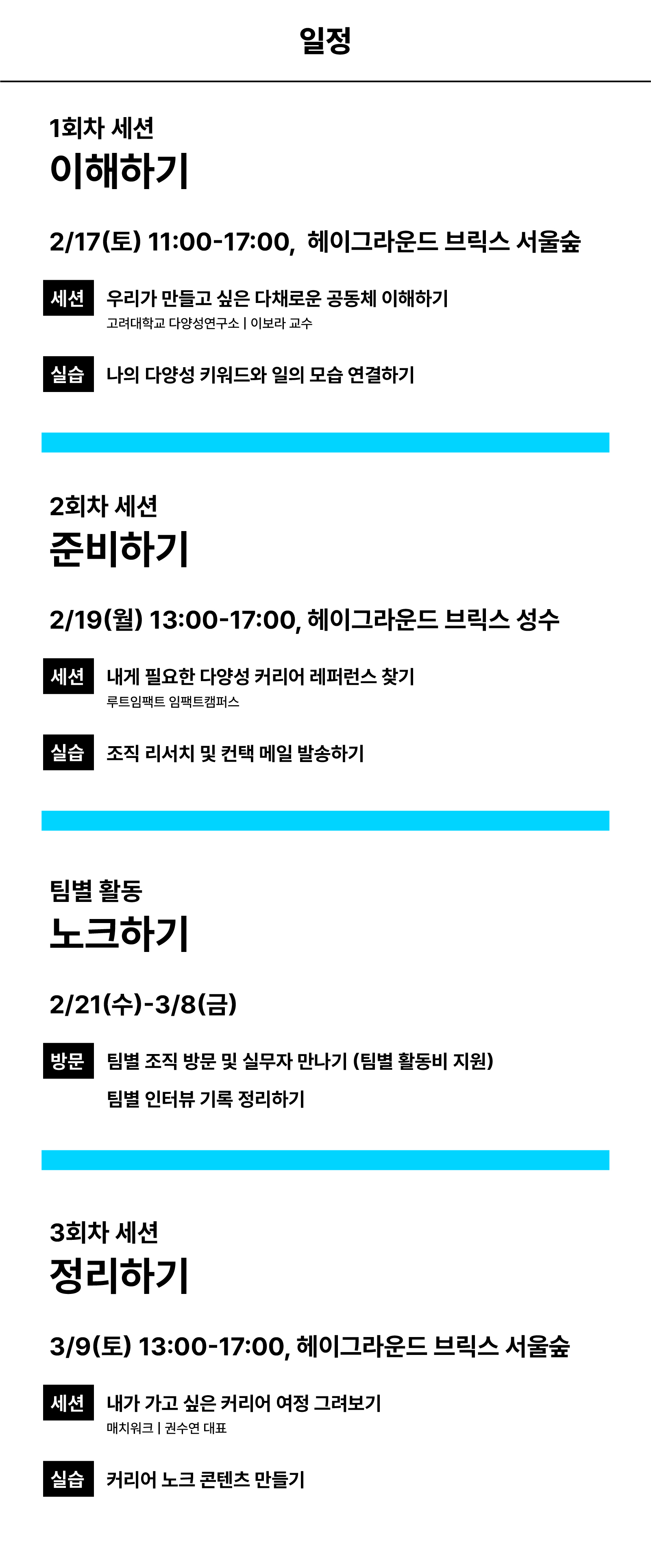 - 진행 일정 : 2/17(토) ~ 3/9(토), 오프라인 진행