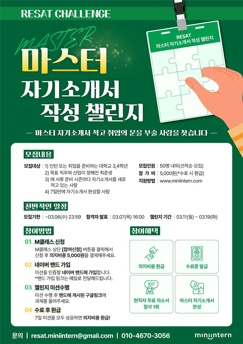 지금 바로 <RESAT 마스터 자기소개서 작성 챌린지 4기>에 도전하고