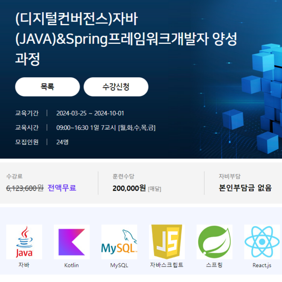자바개발 실무자 양성과정 전액지원 교육생 모집