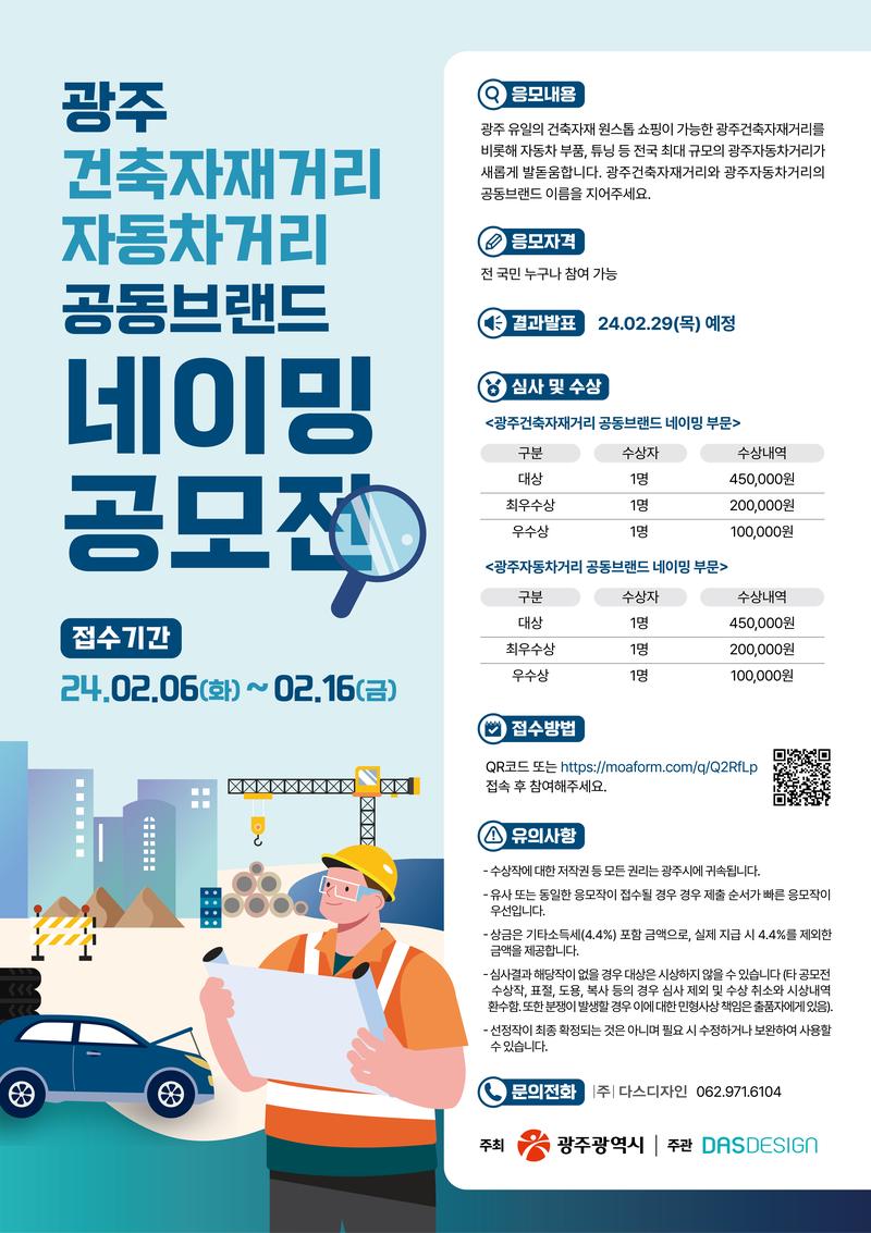 온라인 접수(PC, 휴대폰을 사용해 링크 또는 QR코드 접속) / 광주건축자재거리, 광주자동차거리 공동브랜드 네이밍 공모전 (moaform.com)\