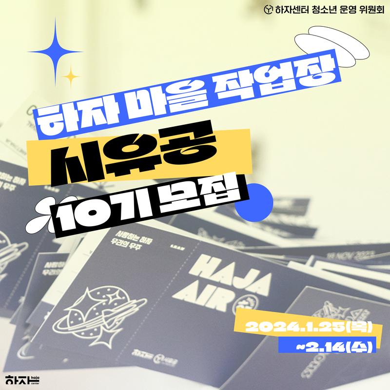 하자마을 작업장 ‘시유공’은 하자센터의 죽돌(청소년)들이 모여 더 나은 하자마을을 위해 생각을 나누고 제안하며, 필요한 프로그램을 기획/운영하는 하자센터 청소년운영위원회입니다. ‘비로소 생각할 공간을 만들다.’라는 뜻의 시유공(始惟空)이라는 이름으로 불리고 있습니다.