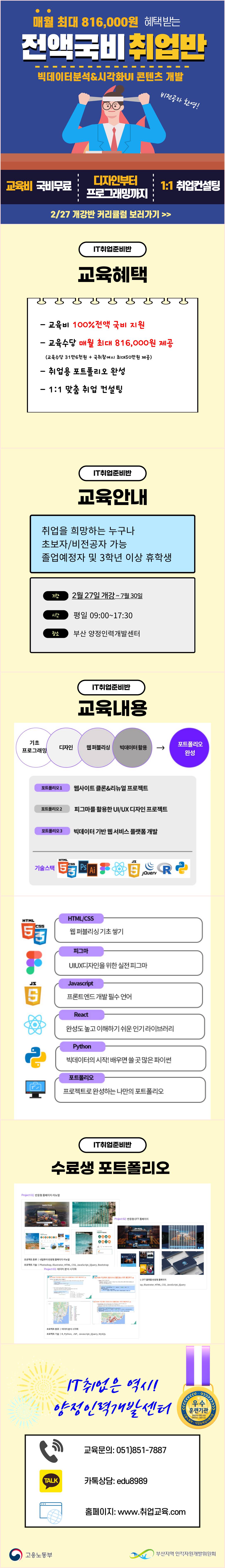 [부산]월 최대 816,000원 받는 IT취업준비반 모집(디자인/퍼블리셔/빅데이터)