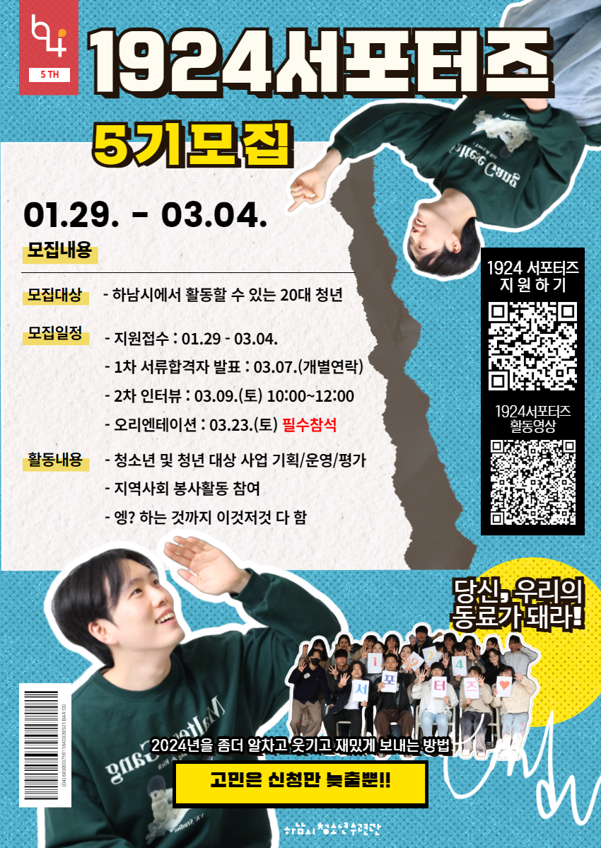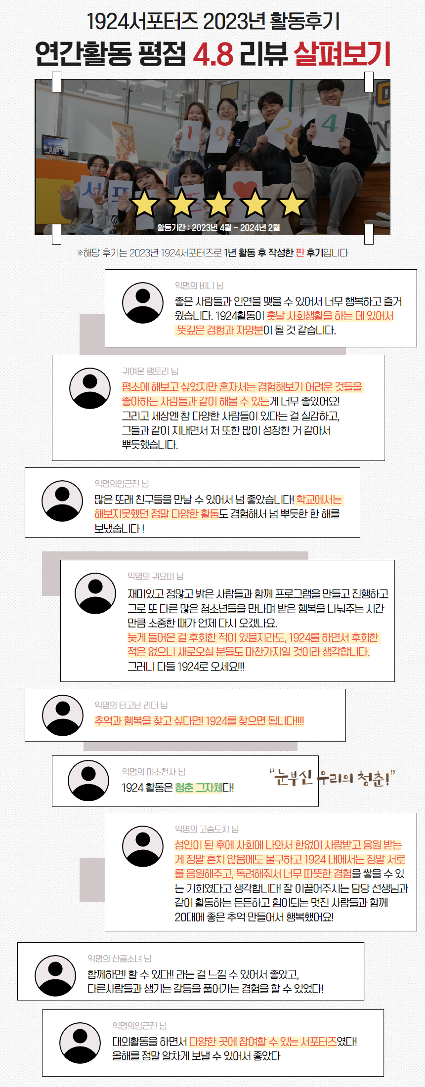 함께하면 더 즐거운 1924서포터즈 청년대외활동을 소개합니다!
