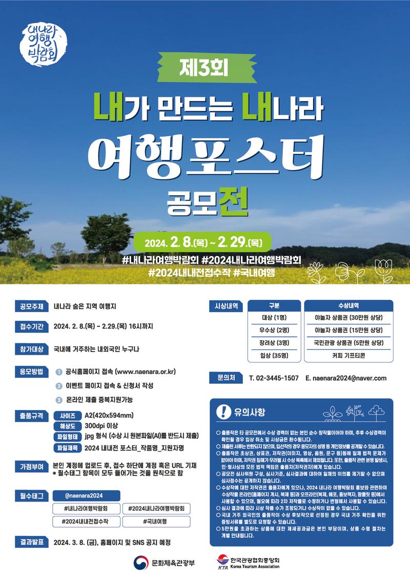 - 장려상 (3인) : 국민관광상품권 (5 만원 상당)